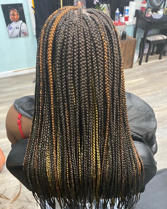 I brought my 13 year old to Senna for knotless braids and she did not disappoint. Not only did her hair look neat for the entire time she kept her braids in, but it did not require excessive pulling for her to achieve the level of neatness. She also offers advice on how to keep the hair clean and healthy while in protective styles. I am extremely pleased with Senna’s services and her kind and welcoming personality. I cannot wait to return and see what she creates next.