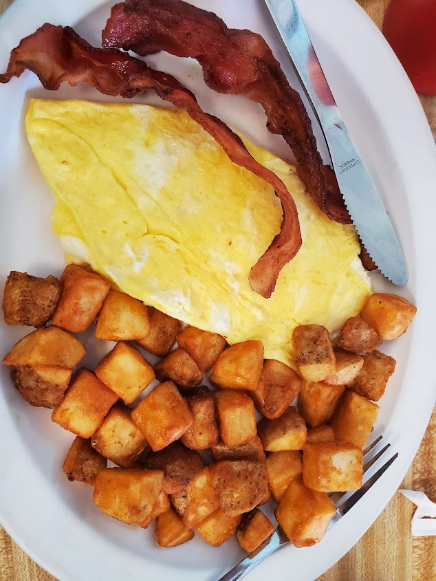 The service staff were very nice. The menu and prices decent. The servings generous. Coffee was good. That's the good stuff. The place wasn't too clean. I ordered two eggs, tomato slices and burger steak. My husband ordered biscuits and gravy with hash brown potatoes crispy with onions. Our food was only slightly warmer than room temperature. It was also quite bland. The burger steak was dry and dense. I ate the tomatoes only. π