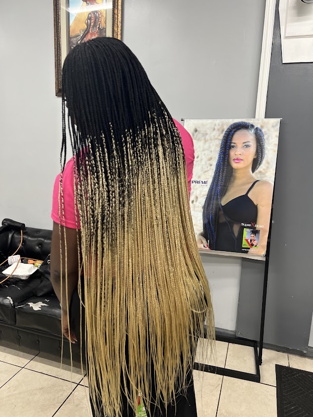 I love Amy exotic hair shop , i recently just got done some nice knotless butt length braids . The braiding technique is overall so amazing and i love it there . The staff was honestly so nice and i always go back . These braids make me feel more like myself again andi love it . I rate my experience overall a 10/10 i even got offered food