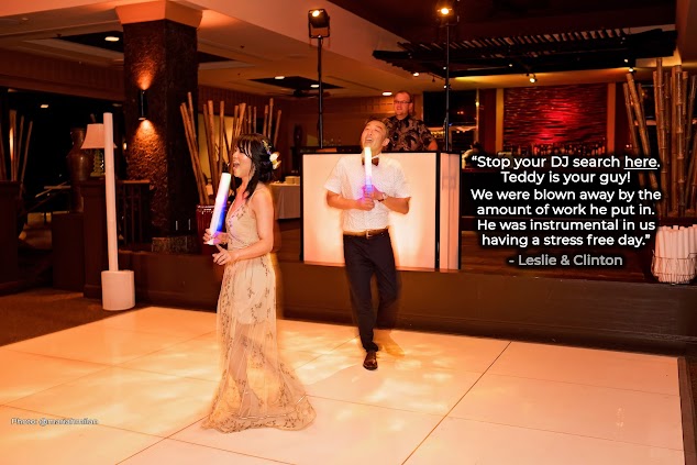 My Wife and I had Teddy and Aurora for our wedding at the Maui Pineapple chapel. Not only were Teddy's DJ skills on point, he went above and beyond what was asked to go over every detail and event to ensure our wedding ran smoothly. I would recommend Teddy's services to anyone looking for music and entertainment to liven up their event. Thank you Teddy and Aurora again for your fantastic performance, and for making our wedding perfect.