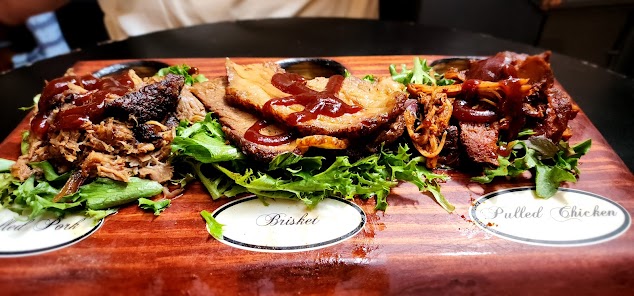 No frills bar and BBQ. We tried the BBQ sampler and were in love with the 14 hour smoked brisket. Don't get me wrong, the pulled chicken and pulled pork (usually my favorite) would be great choices too, but the brisket is where it's at. Our server, Preston, had good recommendations and was way cooler than us.