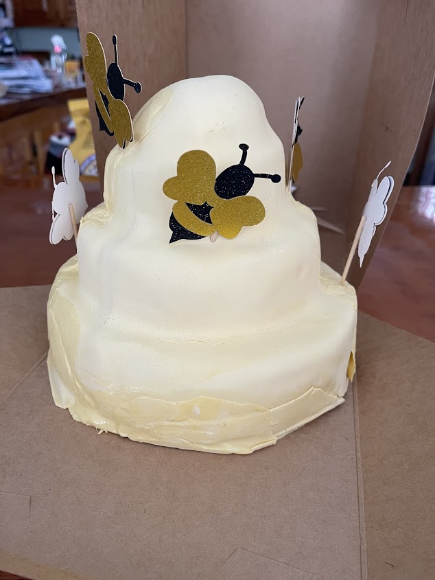 $75. My first gender reveal and she let us leave with a cake like this. Couldn’t even say hey we don’t specialize in fondant. Or the fondant isn’t cooperating can we frost it in buttercream instead. No she through in a cheesecake instead. Gee thanks. The cake is the whole center of the party and this is what we got.