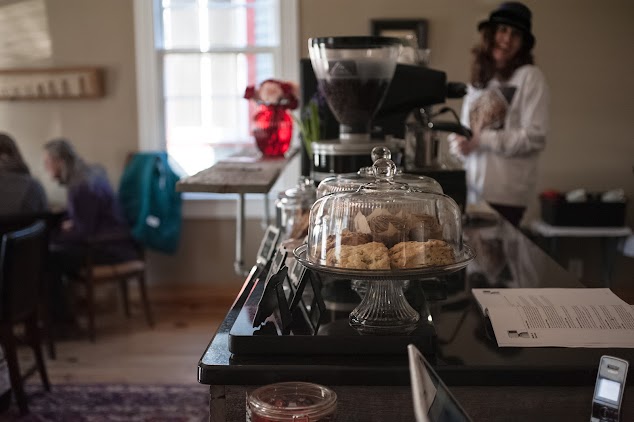 A great serendipitous find on a drive thru Sperryville. We noticed the sign for the shop and doubled back. Parking was a bit odd but plentiful. The shop is small and crowded. A large blackboard displays the fare. We both got a ginger scone that wS delicious. Light and airy with chunks of ginger. We got a maple latte and a Black Bear latte. Both were hot and creamy fresh with wonderful natural tastes. A lot of the shop space is dedicated to tourist t-shirts and stuff. But please take the time to use the most outstanding restroom I have seen in a while. Toasty warm, crisply clean and beautifully appointed. The building is historical so take the time to read about it. A great little coffee shop.