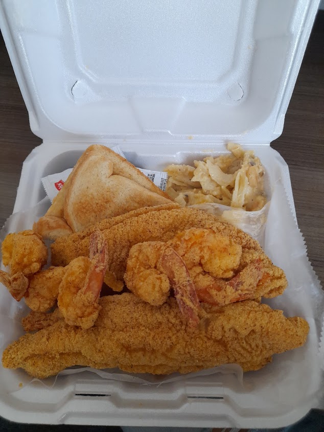 I enjoyed my seafood platter (shrimp, 2pcs fish, bell pepper, jambalaya and potato salad) everything was good