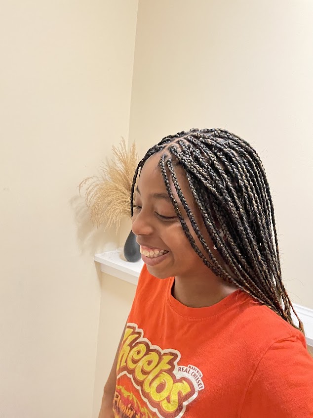 The stylists at Sakira were SO professional and gentle with my tender-headed daughter. I think a dozen people have done her hair and she has NEVER not complained of pain before Sakira. I thought she was falling asleep. We got medium, knotless box braids and they’re soooo pretty and neat. I’m very grateful!