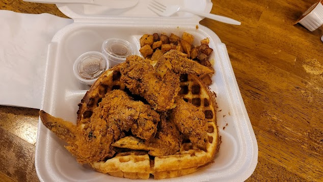 Googled “chicken and waffles near me” and this place popped up. The food looks and tastes great! I ordered online and food was ready for pickup in a timely manner. I got the “Southern Bell” which are the chicken and waffles and I got the “waffle Sunday”. Definitely recommend