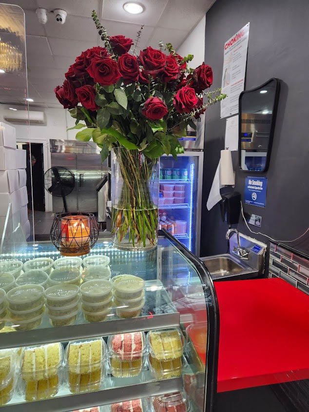 I ventured into this restaurant tonight, and I'm glad that I did. I was greeted warmly and asked what I was interested in. Since it was my first time, I was offered a small sample. I was asked if I ate meat. When I said yes, then I was presented with a small sample of the Mac & Cheese, a piece of Candied Yam, and a Sweet Chilli Wing flat. The Candied Yam was my favorite, becasue I'm into sweet eats. I also enjoyed the Mac & Cheese and wing. I ended up buying an order some Jerk Wingettes, an order of the Sweet Chilli Wingettes, an order of Fried Whiting, and a slice of Lemon Cake. (I heard from a friend that the Hennessey Wingettes are good too!) The Jerk Chicken wings weren't as spicy as I thought it would've been. So, if you're not into food that's too spicy, I think you can give the Jerk Wingettes a try. My mom enjoyed the whiting, and my family enjoyed the wings. I also got to sample the collard greens. They were very flavorful and are cooked with turkey. The establishment was well-lit with a grey, black, and red color scheme. I especially enjoyed seeing the roses. The company does catering and has a separate catering menu from their regular menu. I will visit again in the future to try other menu items.