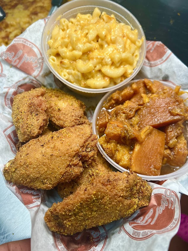 Okay, I want to start of saying this place is clean & neat & the lady behind the counter was awesome! I believe her name was Lexi! She’s a sweetheart with excellent customer service! She even gave me a welcoming sample & that is gold! I will definitely travel back to get a few order’s! The Mac & Cheese, Yam, & Wing (forgot flavor) was DELICIOUS!!!!!