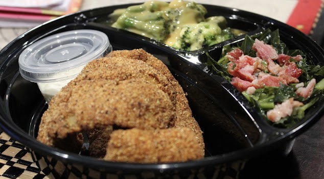 My fiancé and I both had the fried fish-Whiting with macaroni and cheese and broccoli. This was delicious! We will definitely try different menu items after today.