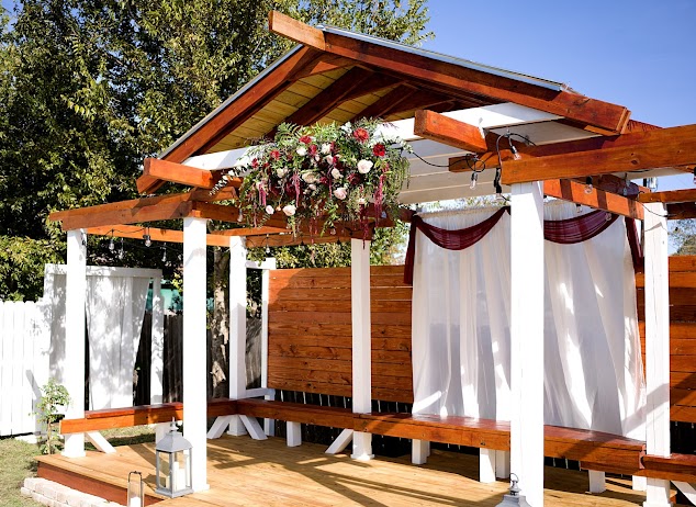Location is in a residential area of East Georgetown. This is in the person's backyard, so the walk up is different and needs to be gussied up. Covered food area with tables, chairs and lighting. The kids played in the grass and had a ball. The owner ate & drank our food and I found that very odd and unprofessional. She should leave a walkie talkie and go in her home and allow guests to enjoy their space with her hovering.