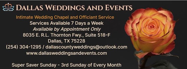 We got married in Mexico, so we needed a second legal ceremony. Dallas Weddings and Events gave us an unforgettable experience! Our officiant, Shelli, had the most perfect ceremony prepared for us and the space was just right for our small family gathering. The decorations were beautiful and we had some time for photos afterwards. We were so impressed and thrilled with everything!