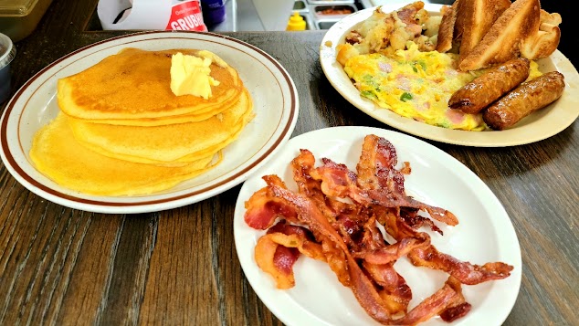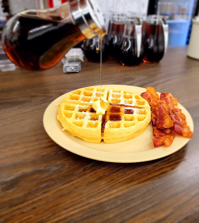 First time trying this place. Walked in and wasn’t greeted. We sat down and a waitress came over. Asked for 2 waters and was given 2 bottled waters. Placed the order and the food came out FRESH and HOT. Only complaint was the omelette was fried a little too hard and the scrapple was think and cooked hard. Waitress wasn’t that attentive, but overall she was ok. There were some dirty tables that should have been cleaned, but wasn’t. I think a second visit is in order.